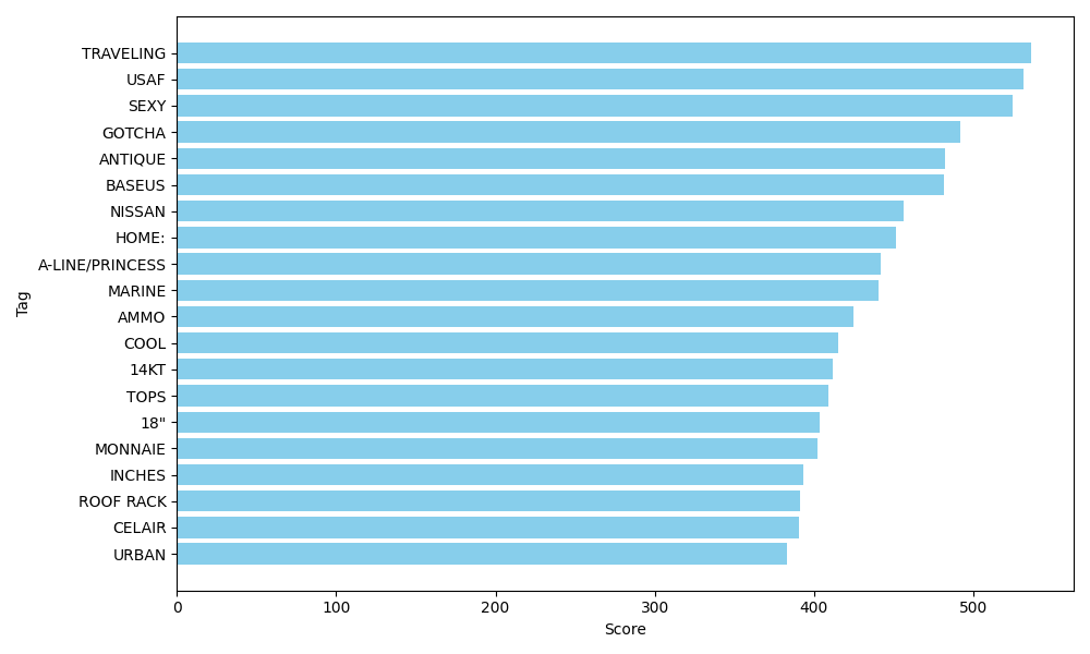 The Elo-inspired model favours tags that consistently appear earlier in product titles when paired with others. Here are the current top contenders.